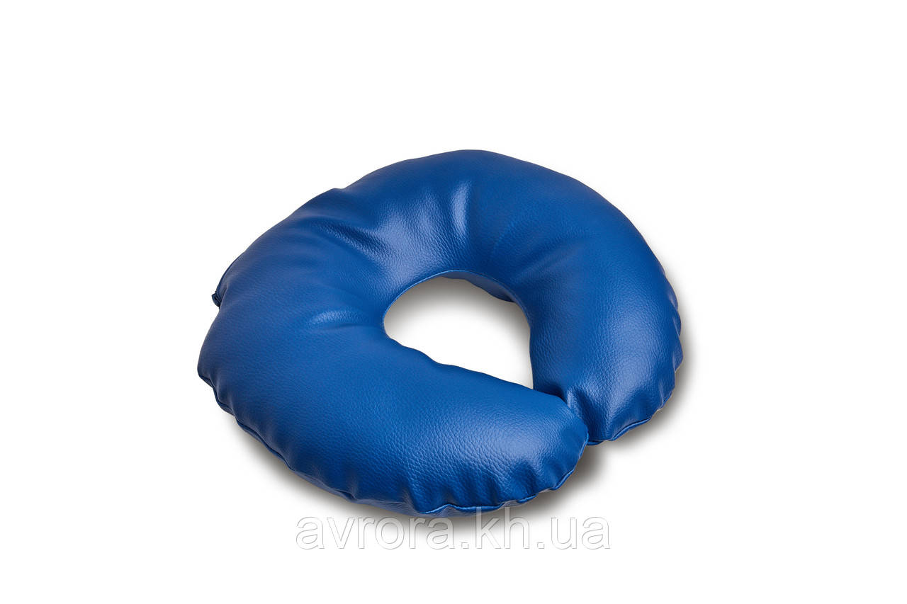 Подушка підкова екошкіра (під шию, рогалик, для нарощування вій). Синя